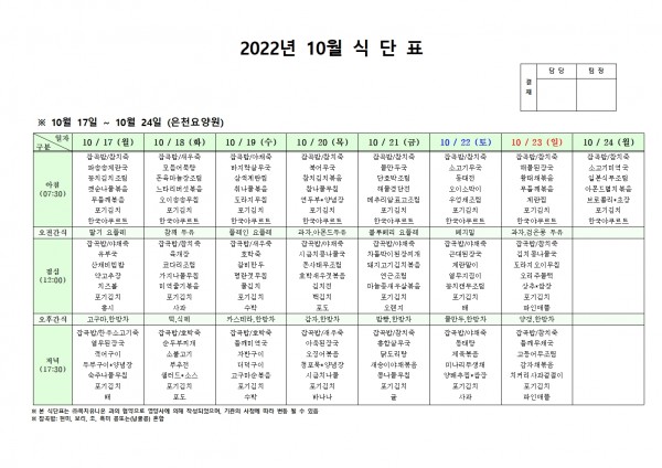 10월 셋째주 식단표 페이지 정보 작성자 은천노인복지회 작성일22-10-13 17:30 조회95,250회 댓글0건 관련링크 이전글 다음글 목록 답변 본문 . 이전글 다음글 목록 답변
