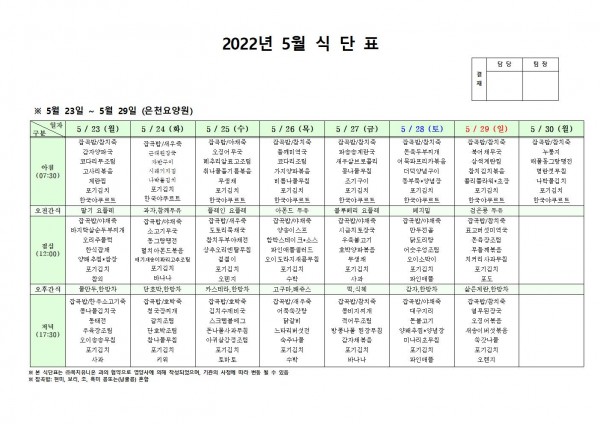 5월 넷째주 식단표 페이지 정보 작성자 은천노인복지회 작성일22-05-19 16:56 조회106,166회 댓글0건 관련링크 이전글 다음글 목록 답변 본문 . 이전글 다음글 목록 답변