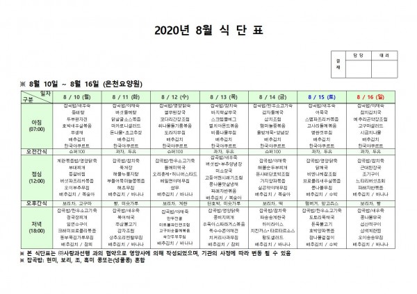 8월 둘째주 식단표 페이지 정보 작성자 은천노인복지회 작성일20-08-25 16:00 조회164,514회 댓글0건 관련링크 이전글 다음글 목록 답변 본문 , 이전글 다음글 목록 답변