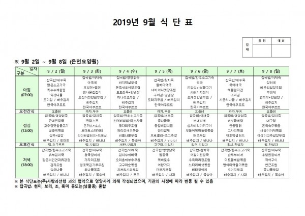 9월 첫째주 식단표 페이지 정보 작성자 은천노인복지회 작성일19-09-09 14:48 조회197,216회 댓글0건 관련링크 이전글 다음글 목록 답변 본문 9월 첫째주 식단표 이전글 다음글 목록 답변