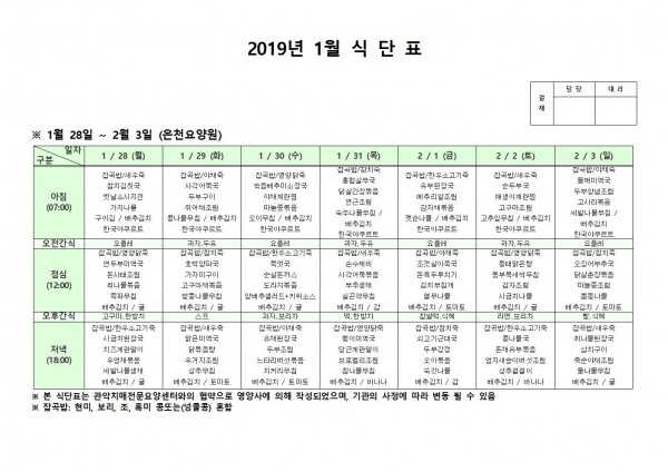 1월 넷째주 식단표 페이지 정보 작성자 은천노인복지회 작성일19-02-13 17:29 조회208,163회 댓글0건 관련링크 이전글 다음글 목록 답변 본문 1월 넷째주 식단표 이전글 다음글 목록 답변