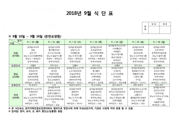 9월 둘째주 식단표 페이지 정보 작성자 은천노인복지회 작성일18-09-18 09:52 조회206,992회 댓글0건 관련링크 이전글 다음글 목록 답변 본문 9월 둘째주 식단표 이전글 다음글 목록 답변