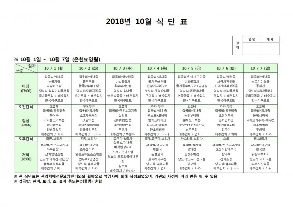 10월 첫째주 식단표 페이지 정보 작성자 은천노인복지회 작성일18-10-08 11:06 조회205,860회 댓글0건 관련링크 이전글 다음글 목록 답변 본문 10월 첫째주 식단표 이전글 다음글 목록 답변