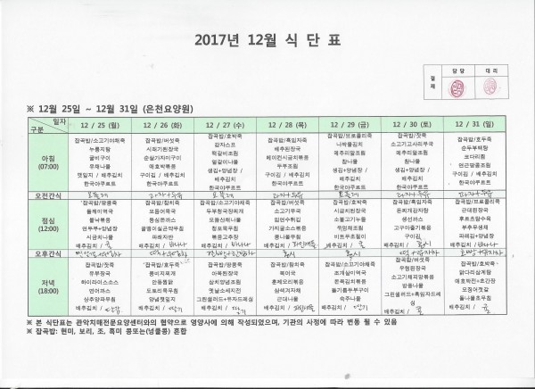 12월 다섯째주 식단표 페이지 정보 작성자 은천노인복지회 작성일17-12-26 11:49 조회193,143회 댓글0건 관련링크 이전글 다음글 목록 답변 본문 12월 다섯째주 식단표 이전글 다음글 목록 답변