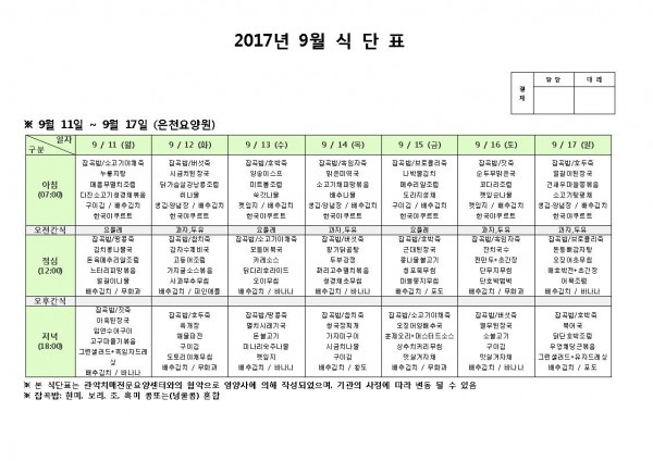 9월 둘째주 식단표 페이지 정보 작성자 은천노인복지회 작성일17-09-11 17:01 조회183,733회 댓글0건 관련링크 이전글 다음글 목록 답변 본문 9월 둘째주 식단표 이전글 다음글 목록 답변