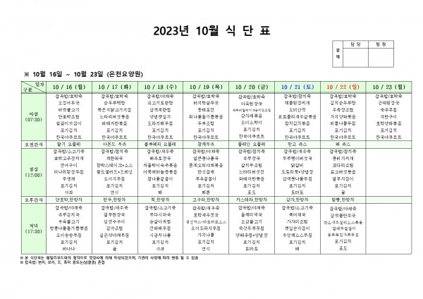 10월 셋째주 식단표 페이지 정보 작성자 은천노인복지회 작성일23-10-12 17:24 조회39,633회 댓글0건 관련링크 이전글 다음글 목록 답변 본문 . 이전글 다음글 목록 답변