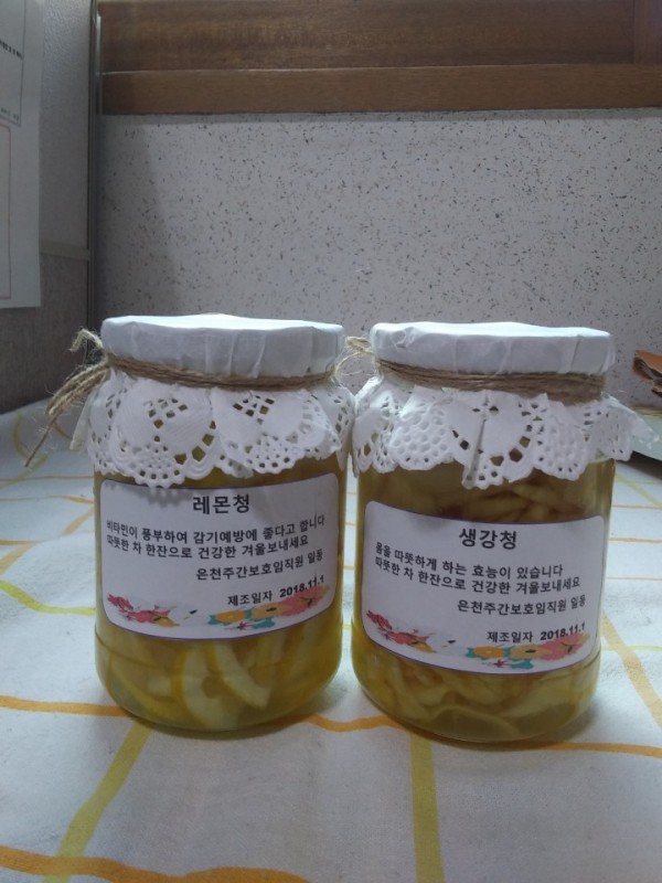 어르신들과 생강청과 레몬청을 만들었습니다.