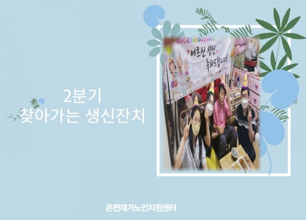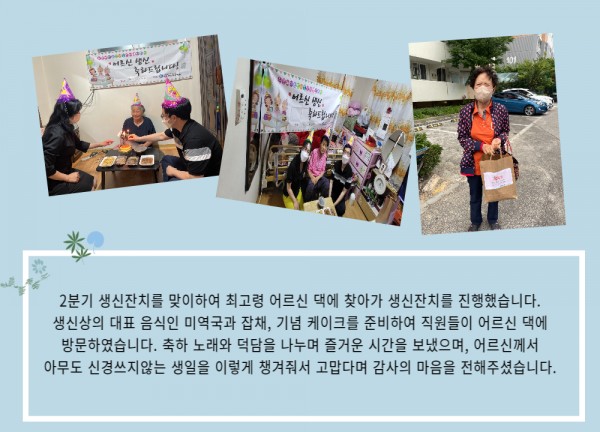[재가노인지원서비스] 2분기 찾아가는 생신잔치 페이지 정보 작성자 은천노인복지회 작성일22-07-06 13:26 조회18,534회 댓글0건 관련링크 이전글 다음글 목록 답변 본문 2분기 찾아가는 생신잔치 이전글 다음글 목록 답변