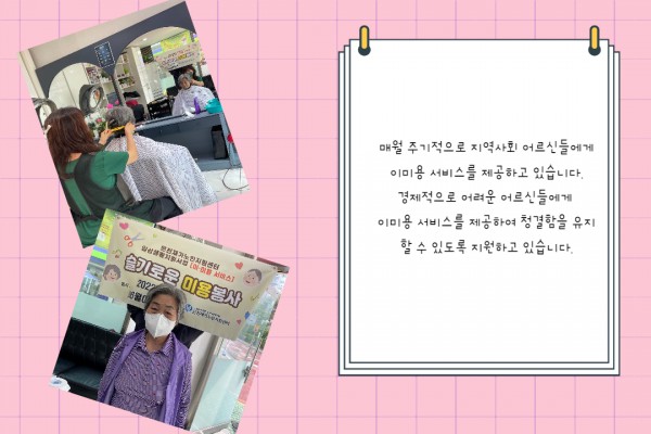 [재가노인지원서비스] 이미용 서비스 페이지 정보 작성자 은천노인복지회 작성일22-07-06 13:27 조회18,344회 댓글0건 관련링크 이전글 다음글 목록 답변 본문 6월 이미용 서비스 이전글 다음글 목록 답변
