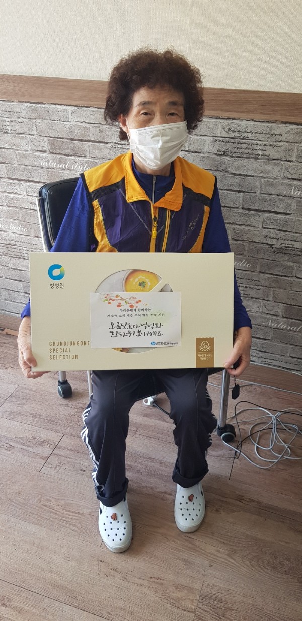 이번 추석 선물을 우리은행에서 지원받아 동대문구 저소득층 어르신들에게 지원해 드렸습니다.