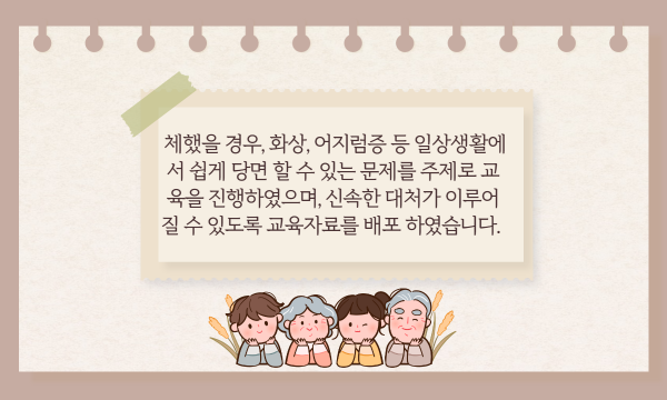 [재가노인서비스] 대상자교육_응급처치교육 페이지 정보 작성자 은천노인복지회 작성일22-03-03 11:43 조회19,747회 댓글0건 관련링크 이전글 다음글 목록 답변 본문 은천재가노인지원센터 대상자 어르신들에게 응급처치교육을 진행하였습니다. 이전글 다음글 목록 답변